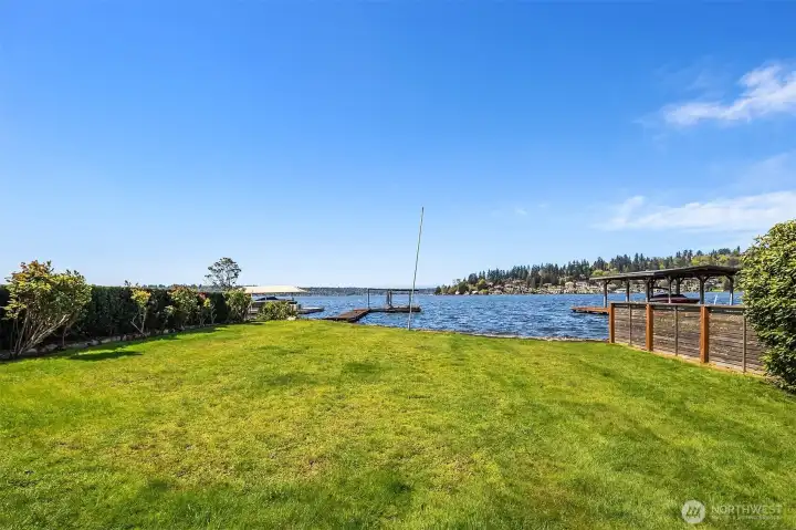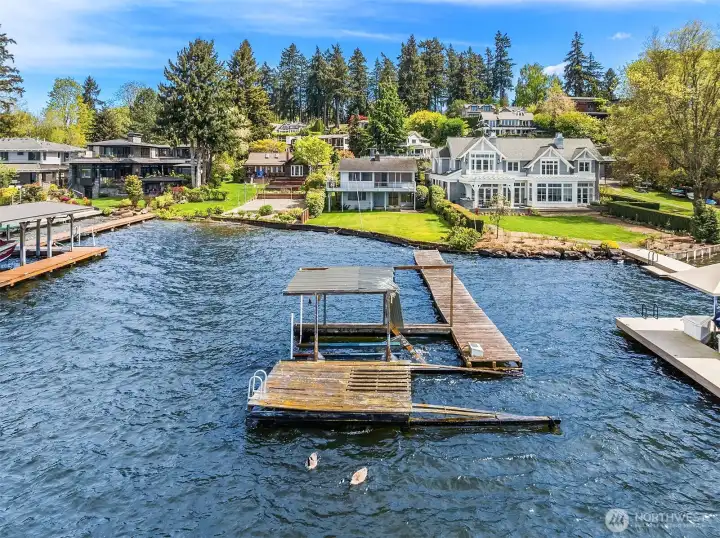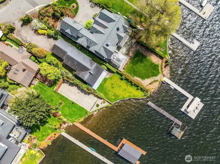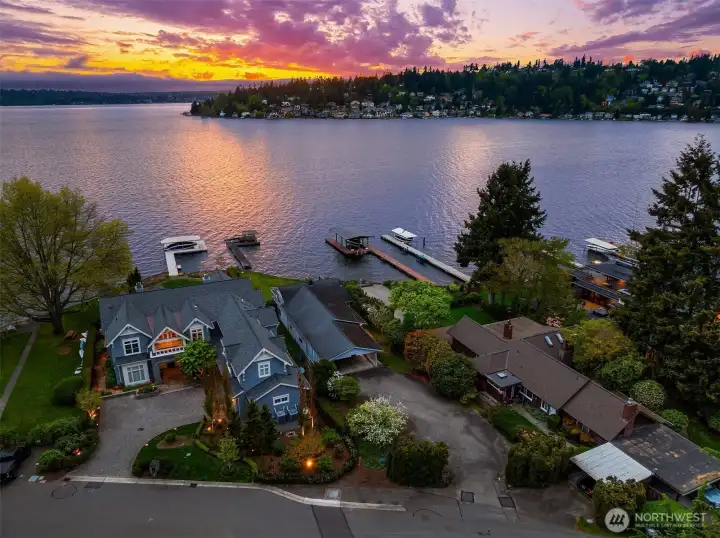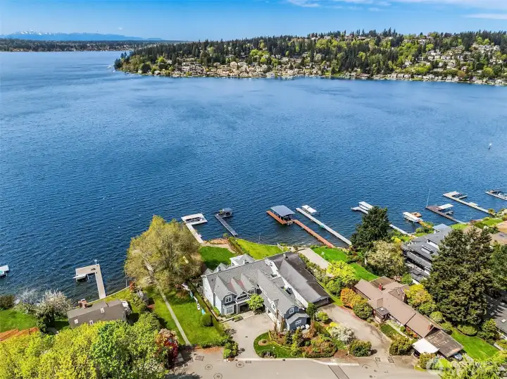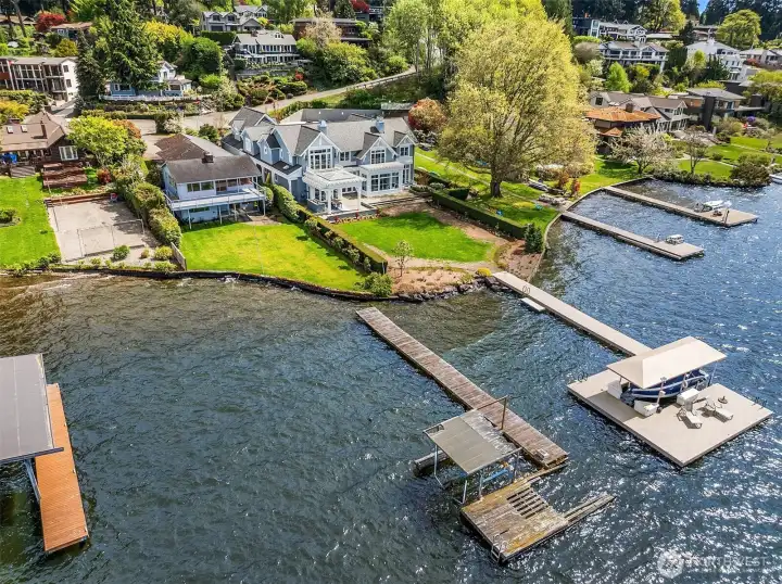 This exceptional, level waterfront property invites endless custom vision & dreams to be realized in one of Kirkland’s most treasured settings with 60 feet of level waterfront on the shores of Lake Washington. Perfectly set on a sunny lot in the coveted Rose Point community, this is a rare opportunity to build your dream home and enjoy lakeside living with unforgettable sunsets. The existing home is set on 37,552sf & offers charm & flexibility with 4 beds & a bonus ideal for rental income or comfortable use while planning your future custom home. The living room & dining room captures the spirit of its era with a double sided brick fireplace & walls of windows framing stunning views and a daylight basement that opens to a sprawling lawn that leads directly to the lake. Moments from downtown Kirkland, waterfront parks, & nearby schools including Peter Kirk Elementary, Kirkland Middle, & Lake Washington High School, this is a compelling opportunity to truly experience the waterfront lifestyle & build your own custom estate.