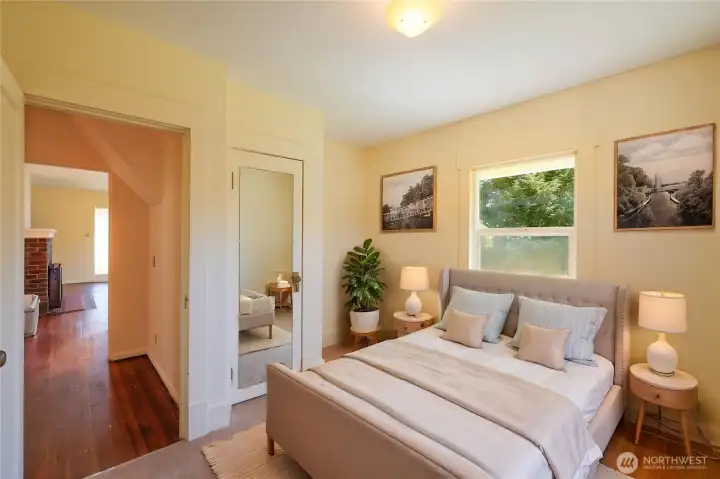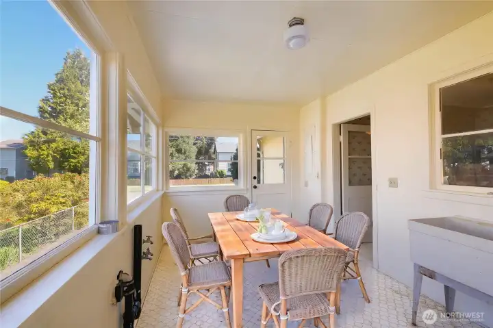 Step into the charm of this 1925 home, perfectly situated on a very spacious corner lot with alley access! A welcoming front porch sets the tone, while the large detached garage and separate shop offer versatility and great convenience. This home is as functional as it is inviting. With multiple entry points, find a beautiful sunroom filled with natural light and sink, warm wood details, and a central fireplace that creates a cozy focal point. This home has a spacious open kitchen and a designated dining area with plenty of windows and great natural lighting throughout. The thoughtfully designed layout flows with ease, offering comfort and character. The upper half-story provides a great, versatile space. A truly sweet home, full of warmth, light, and timeless appeal. The yard is full of fruit trees, and the area is accessible and level. Great in-town location across from grade school. Don't miss this opportunity!