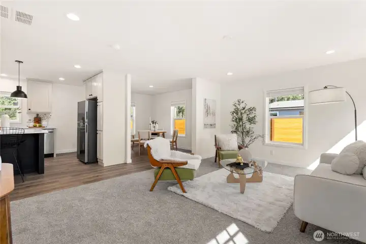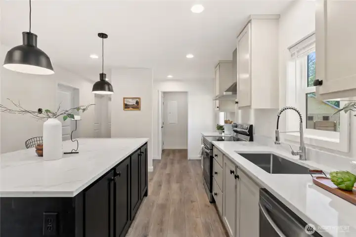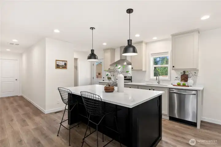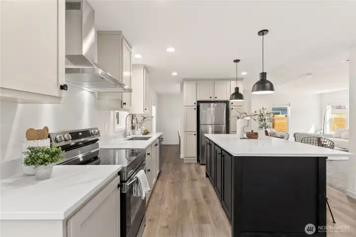 Absolutely stunning brand-new home in the desirable Kent/Covington area—smells new, feels new, and completely move-in ready! This beautifully designed 3-bedroom, 2-bathroom home offers a modern open-concept layout with a generous living room that flows seamlessly into the stylish kitchen. Enjoy quartz countertops, stainless steel appliances, an oversized island with seating, and a formal dining area—perfect for everyday living and entertaining. The spacious primary suite features a large walk-in closet and a luxurious ensuite bathroom with double vanity and a sleek walk-in shower. Two additional well-sized bedrooms and a full guest bathroom provide comfort and flexibility. Conveniently located just minutes from shopping and dining, including Costco, Walmart, and Fred Meyer, with easy access to Hwy 18 and nearby lakes for outdoor enjoyment. This is the one you’ve been waiting for—must see!