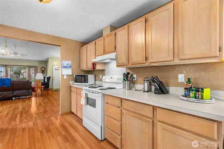 Welcome home to 1531 Mapleridge Dr SE, an exceptionally clean and well-cared-for rambler in a convenient and established Olympia neighborhood. This 3 bedroom, 2 bath home offers 1,514 sq ft of bright, open living space with vaulted ceilings that create an airy, comfortable feel throughout. The layout flows easily from the main living area into the kitchen and dining spaces, making it perfect for both everyday living and entertaining. Laminate flooring runs through the main areas, while the spacious primary suite features its own ensuite bath and a relaxing retreat from the rest of the home. Situated on a corner lot, the fully fenced backyard offers privacy, room for pets, and space to enjoy the outdoors. A 2-car garage adds everyday convenience, and the home’s overall condition makes it truly move-in ready. Located just minutes from shopping, dining, parks, and major commuter routes like I-5, and close to Providence St. Peter Hospital, this home is perfectly positioned for easy living. Whether you're a first-time buyer looking to build equity or someone ready to downsize into a low-maintenance, single-level home, this one checks all the boxes in a location that continues to stay in demand.