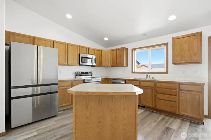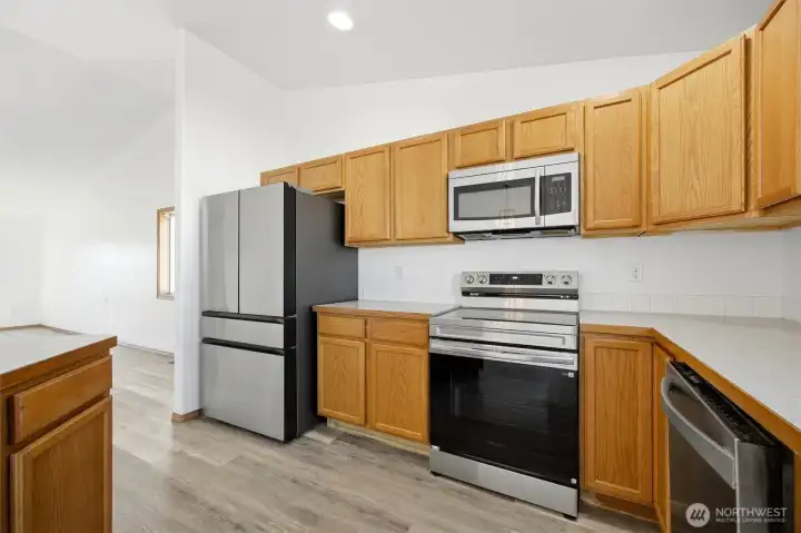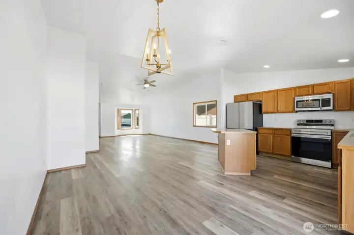Welcome home to this beautifully remodeled 3-bedroom, 2-bathroom gem offering 1,564 square feet move-in ready living. From the moment you step inside, you'll be impressed by the soaring vaulted ceilings and wide-open floor plan that fills every room with natural light and space to breathe. Whether you're entertaining guests or enjoying a quiet evening in, this layout was designed to bring people together. The fully updated kitchen is the heart of the home, featuring gleaming stainless steel appliances, ample counter space, and a seamless flow into the main living areas. Location doesn't get much better — you're just minutes from schools and nearby medical clinics, making daily life convenient. With a layout that lives larger than it looks, this home checks every box.