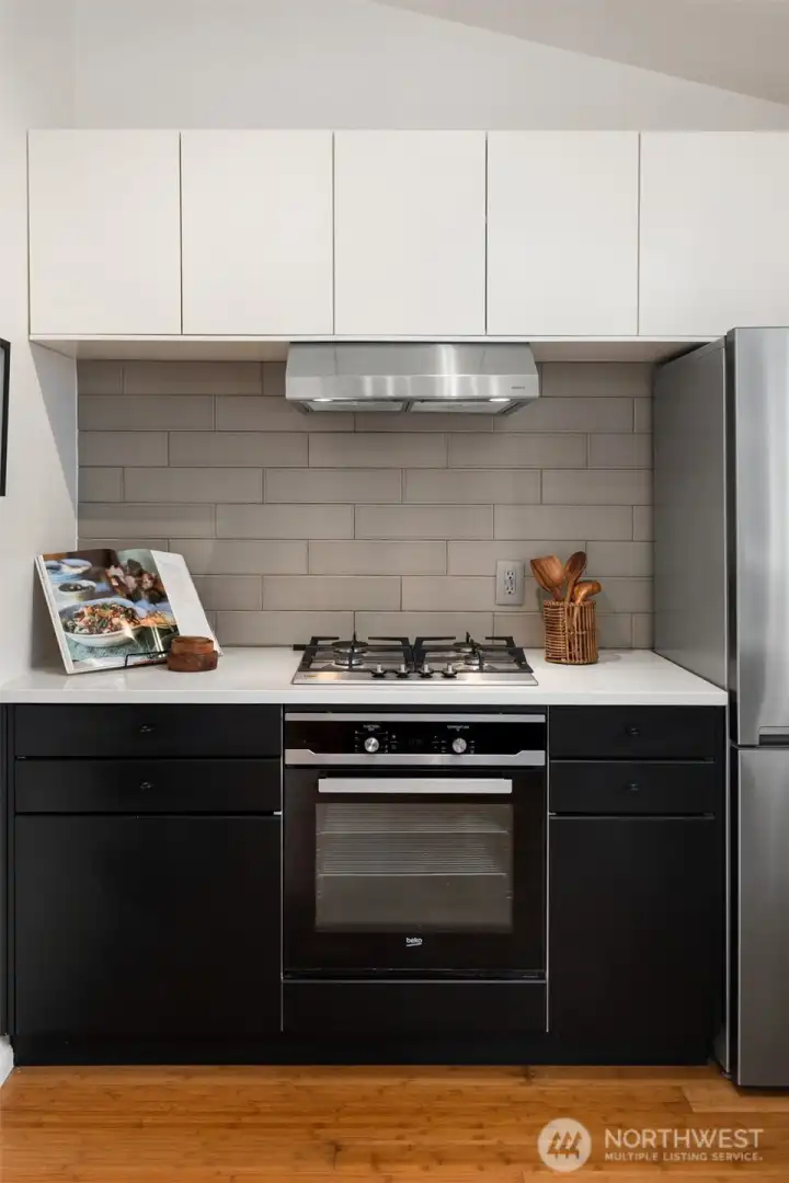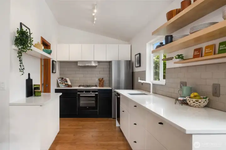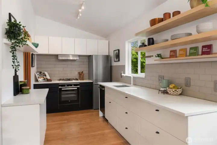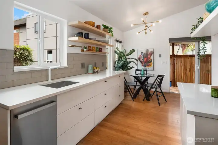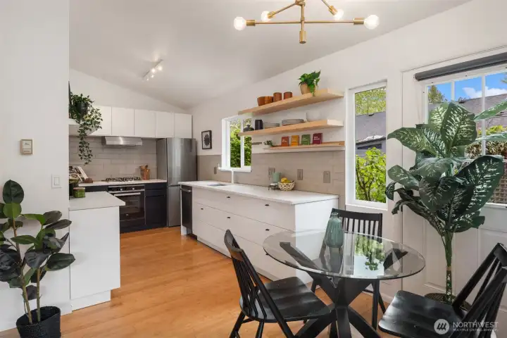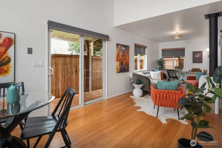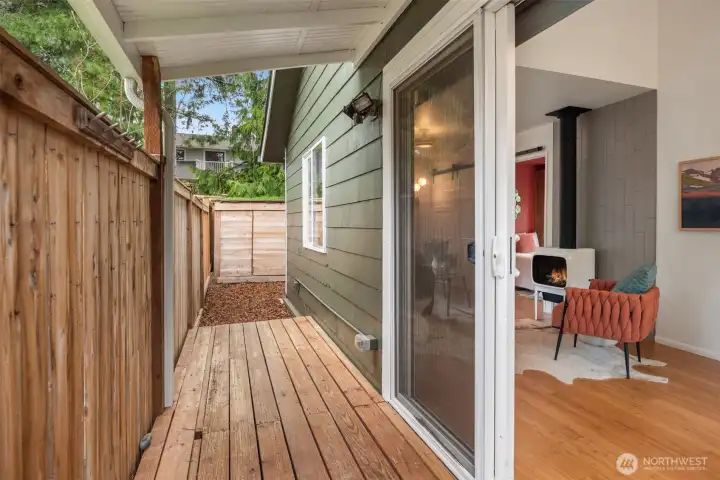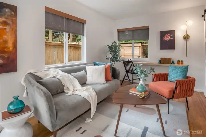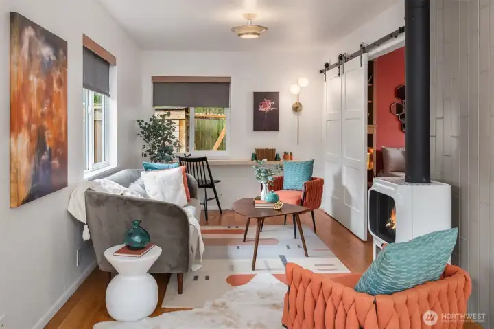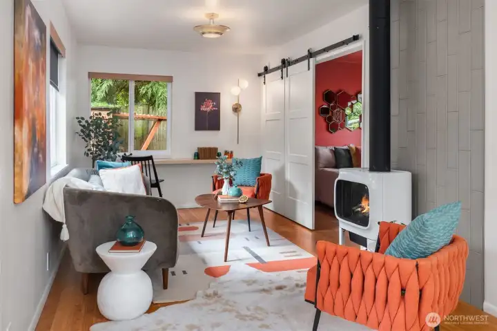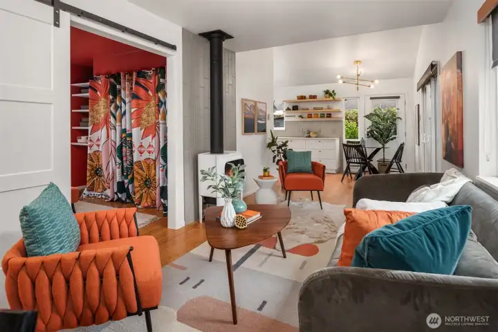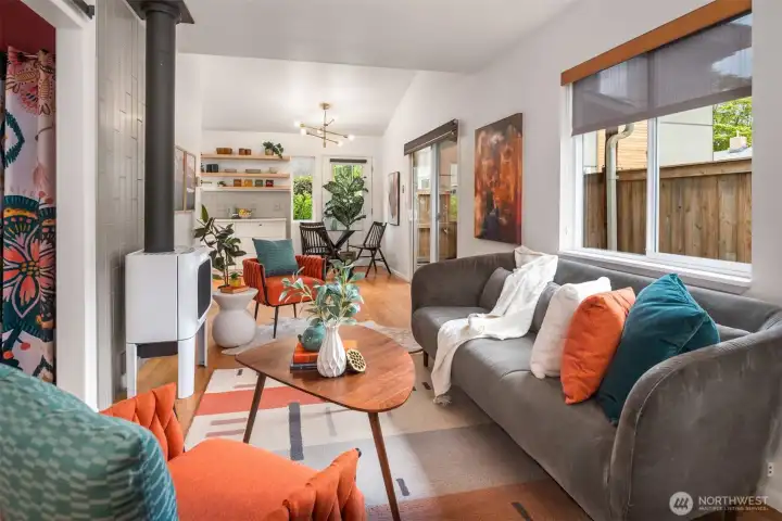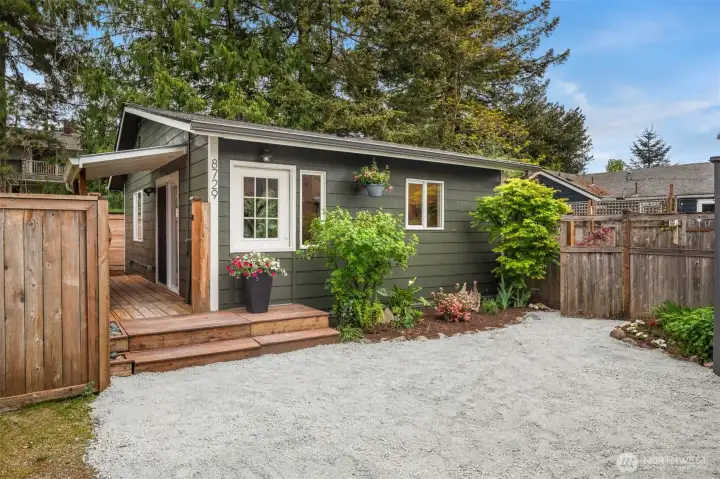 Tiny house alert! Welcome to this Tiny house with a BIG personality in north Ballard. This home has been perfectly updated by a creative seller who maximized the space for modern living in a small footprint. The thoughtful storage, custom built-ins, an intentional kitchen space, and a spectacular yard make this home one of the most unique homes in the neighborhood. This tiny house has also been built to maximize energy efficiency which in this day is everything! Check out the kitchen which is perfectly situated for those who love to cook and entertain. The living room is ready for your cozy Sundays or chill evenings with you honey. The bedroom has custom built in natural wood shelving and a huge closet, plus a slider that leads to your adorable private yard. This outdoor area is fully fenced and has a sizable entertaining patio. You will be amazed by its spaciousness and it is perfect for those who love to grow their own veggies and bask in the PNW's summer. Imagine hosting summer gatherings or spending time sunbathing with your pals in this great yard. Every part of this home and yard is custom and intentional, which is super rare in todays market. And there is even one off street parking space. Bonus: The location is incredible. Not only do you have all of your fav going out spots close by but you are also super close to the D-line and other transit.