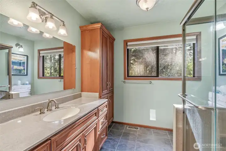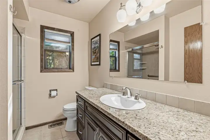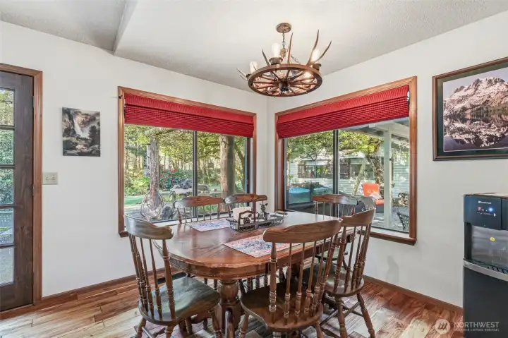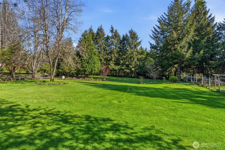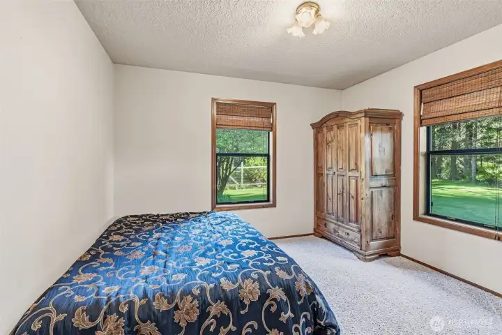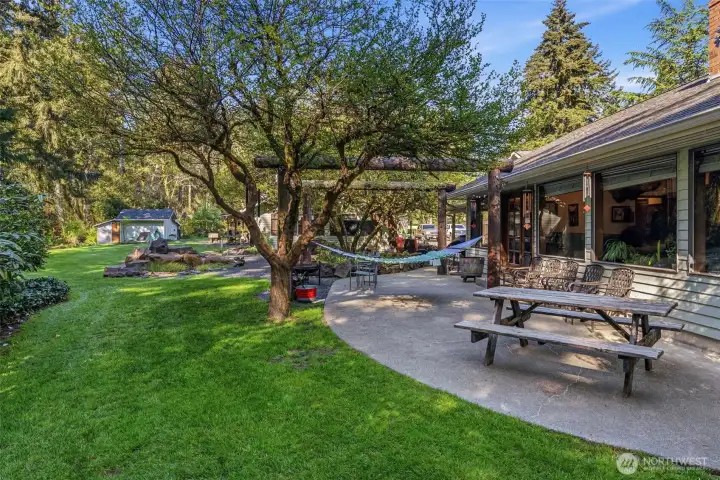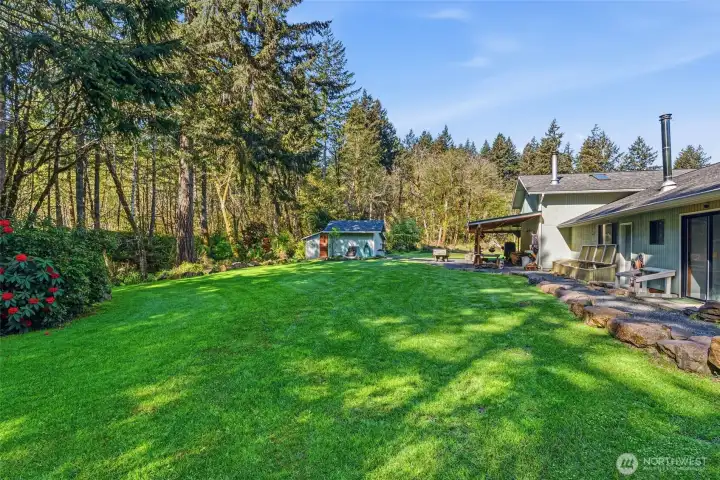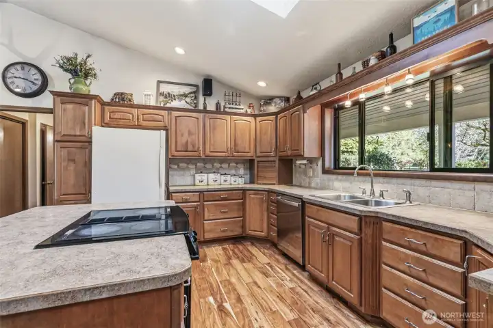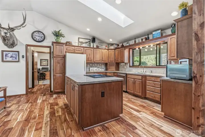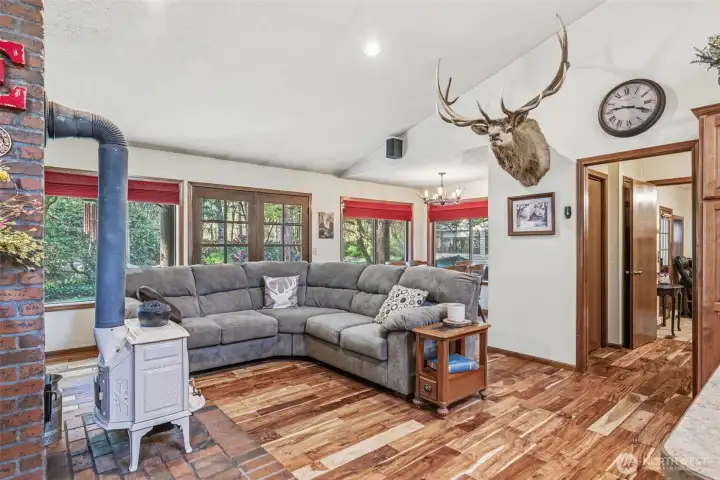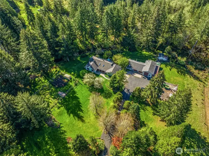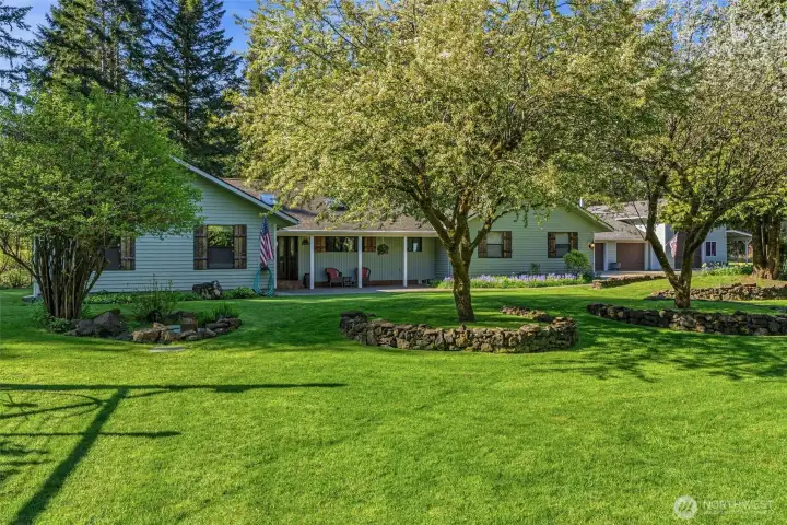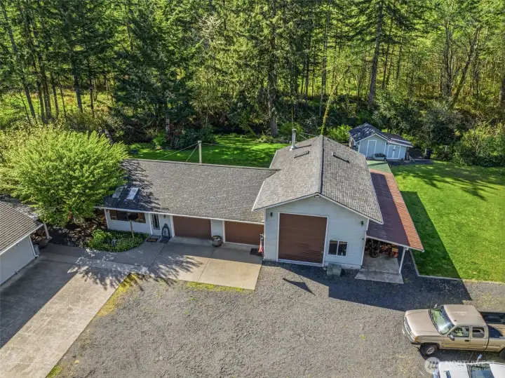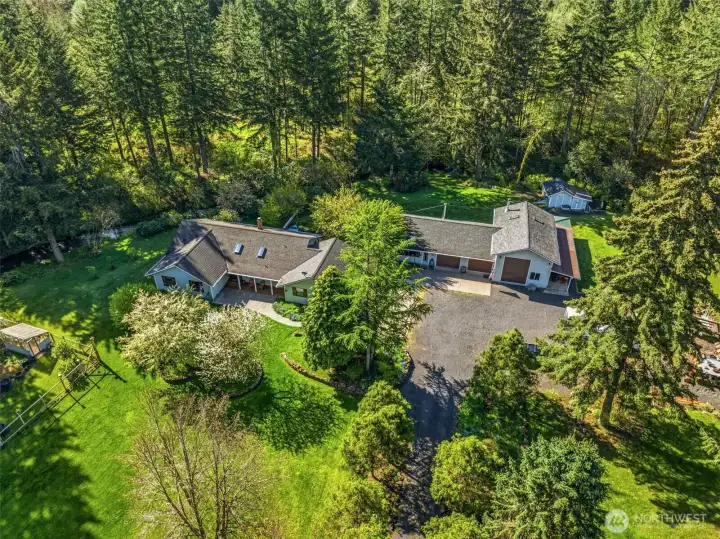 This is the kind of place people don't stumble across very often. Set on 3.83 private acres in Winlock, this well-cared-for ranch style home checks a lot of boxes that are genuinely hard to find all together at this price point. The 2,052 sq ft single-level layout works well, with an open kitchen and living area anchored by a brick hearth with woodstove, cedar accent wall, and hardwood floors. Vaulted ceilings and skylights keep things bright. The kitchen has a center island with cooktop, custom cabinetry, tile backsplash, and stainless appliances. Three bedrooms, 2+ baths, and a heat pump for heating and cooling round out the house. The grounds are where this one really stands out! A tree-lined gravel driveway winds through mature landscaping to the home, a year-round creek runs around the property, and there's a fenced garden area with green house...ready for the growing season. Not only is there an attached garage but also a HUGE 1,980 sq ft detached garage with plenty of room for vehicles, toys, and storage PLUS it has a finished room and 3/4 bath, which works well as an office or whatever you need it to be. Home is on well and septic. Quiet road, park like-private setting...but less than 10 minutes to I5! Schedule to see it today!