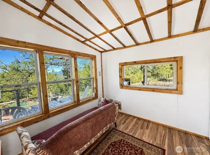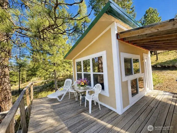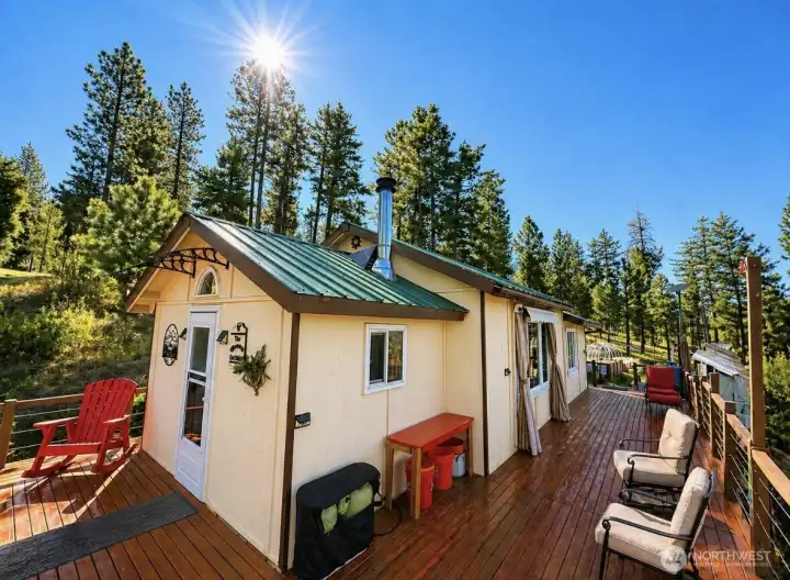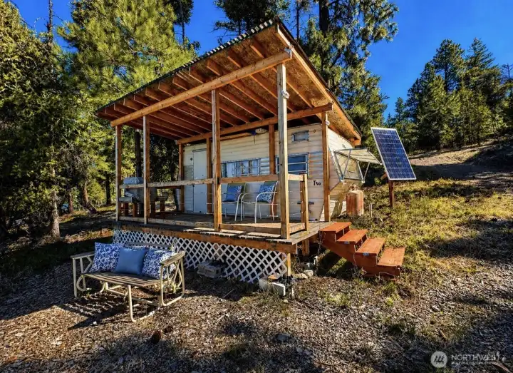 A true gardener’s dream designed for privacy, sustainability, and easy country living. Powered by abundant solar energy, this property is thoughtfully arranged for those seeking a simpler, self-sufficient lifestyle surrounded by natural beauty. Ample garden space and areas suited for rabbits and chickens make it an ideal homestead or hobby farm. ATV, plow truck, shop tools, and garden tools all convey with the sale. The main home is a cozy 1-bed, 1-bath cabin offering efficient living with warm charm. Large windows and outdoor spaces capture stunning Chopaka views, creating a peaceful, light-filled retreat. The second parcel adds versatility with a beautifully refurbished travel trailer used as a guest cottage, a separate shower house, and a flexible studio with a Murphy bed—perfect for guests, creative use, or potential income. Multiple outbuildings provide abundant storage, workspace, and room for future projects. A functional greenhouse/shop living space offers year-round usability for gardening, crafting, or simply enjoying a warm, bright escape. Private, peaceful, and well-designed, this property delivers comfort, flexibility, and breathtaking surroundings—ideal for full-time living, multi-guest accommodations, or a sustainable country retreat.