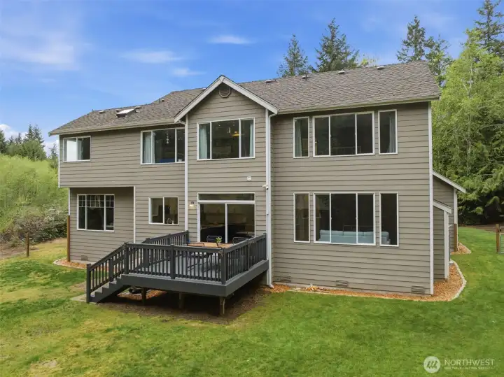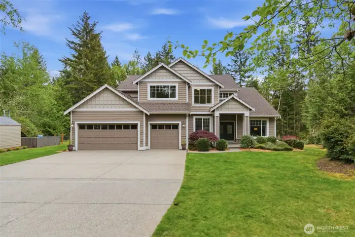 Welcome to your private Northwest retreat on 5 serene acres in a gated Seabeck community bordering DNR land. Just minutes from the Seabeck Marina and Hood Canal, this peaceful wooded setting offers the perfect blend of privacy, space and connection to the outdoors. Inside, enjoy a light filled functional layout with vaulted ceilings, warm hardwood floors, and multiple living spaces including formal and casual areas, an office, and dual staircases provide for added flexibility throughout the home. The kitchen offers generous workspace with a center island, walk-in pantry, coffee bar and open flow into the main living areas, perfect for everyday living and gathering.Upstairs, the spacious primary suite is a true escape with a 5-piece bath and walk in closet, along with three additional large bedrooms, a loft and built in desk area.Step outside to explore trails, a fenced garden, and two fire pit areas. A detached studio with a treehouse- like feel creates the perfect space for a creative retreat, or quiet escape. Private trails lead to an easement accessing 3,500 acres of DNR land. Additional features include a storage shed, RV/Boat parking and a 3 car garage. Recent updates include new windows, heat pump, and updated kitchen with new appliances. A rare opportunity to own acreage, privacy, and direct access to the outdoors in a sought-after location.