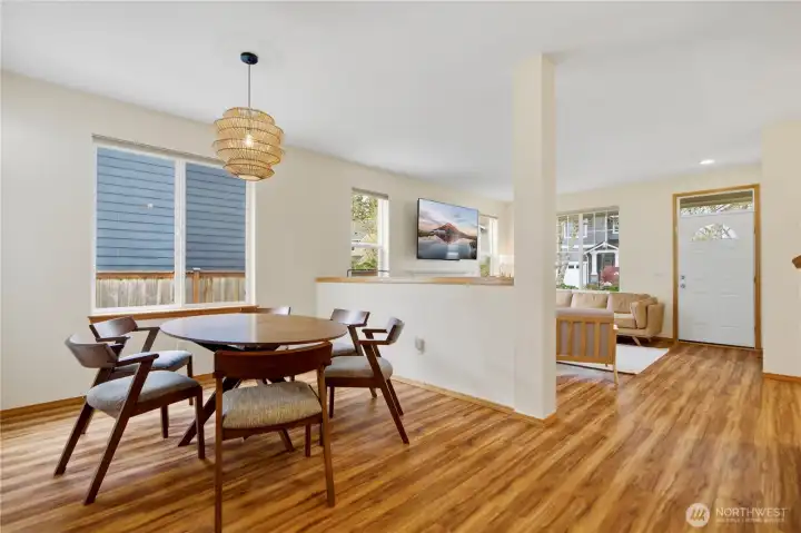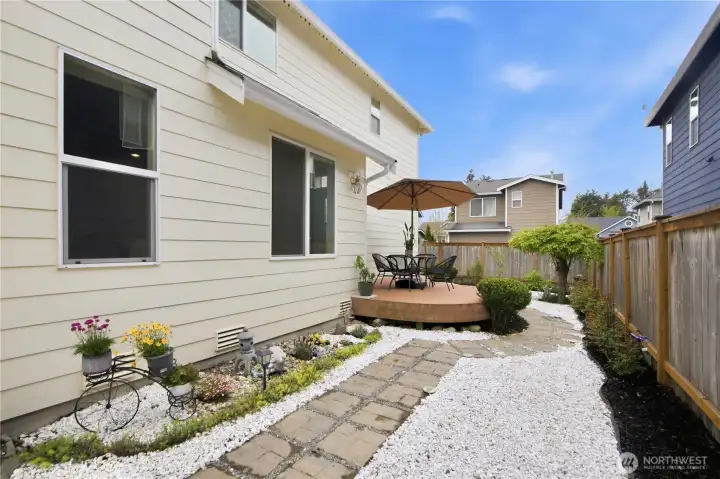 Welcome to the Mews at Lake Wilderness—a charming community just minutes from top dining, shopping, parks, trails, and easy freeway access. Step inside to a warm, inviting main floor with a cozy gas fireplace and stunning kitchen featuring quartz counters and stainless steel appliances (all included!). Slide open the dining room doors to your private, fully fenced backyard and spacious deck—your personal retreat for spring and summer entertaining. Upstairs, the luxurious primary suite impresses with a 5-piece en-suite and deep soaking tub. Two additional bedrooms, a full guest bath, and a versatile bonus room—perfect for a home office or flex space—complete the upper level. Top-ranked Tahoma School District, pre-inspected for buyer confidence, and a convenient alley-access 2-car garage. Move-in ready and waiting for you!