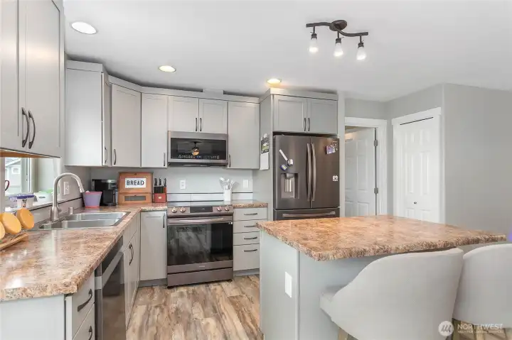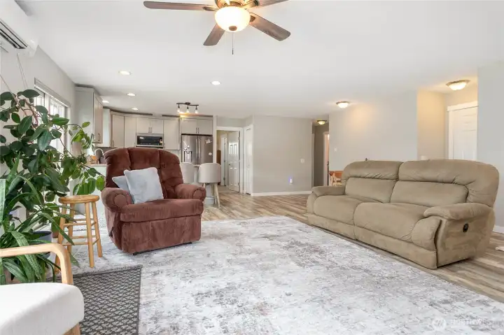 Impeccably maintained single level home in Sumas offering three bedrooms, two bathrooms, and 1,300 square feet of comfortable living space. Enjoy an open concept layout with spacious rooms and seamless flow. Perfect for everyday living and entertainment. The kitchen features stainless steel appliances and opens up to a bright living area. Home was recently updated with a new walk-in shower in primary bathroom, new Anderson windows, new 30-year roof, and fresh paint. Stay comfortable year-round with an energy efficient mini split providing both heat and AC. Step outside to a large fenced yard with alley a generous patio for ideal gatherings, and plenty of room for RV Conveniently located close to schools and parks, this home is move in ready and a must see.