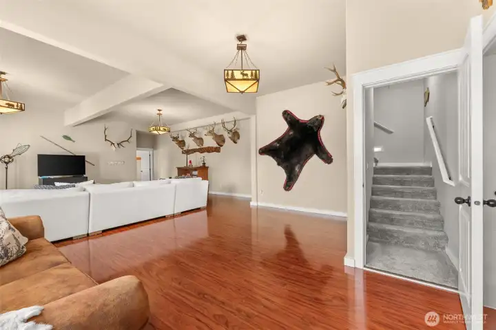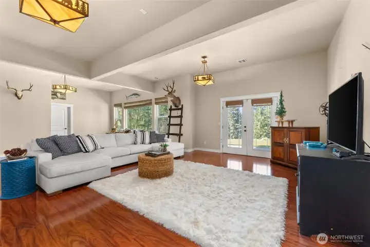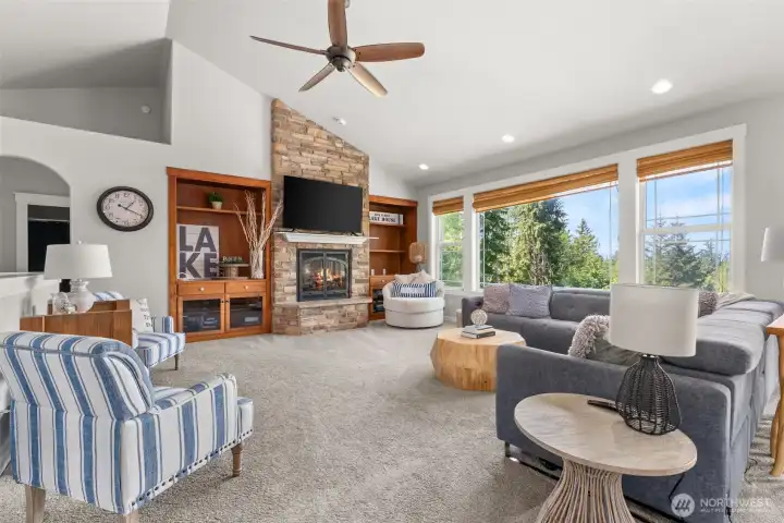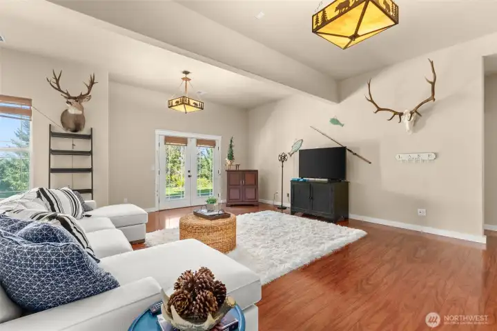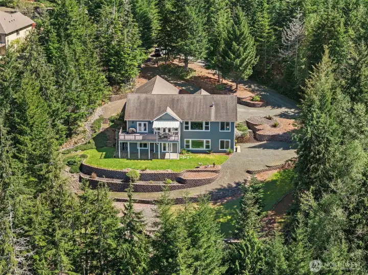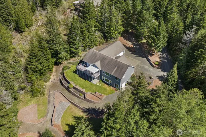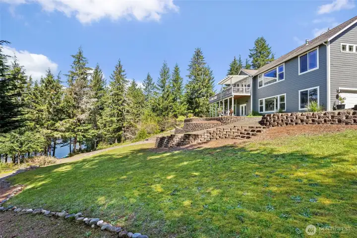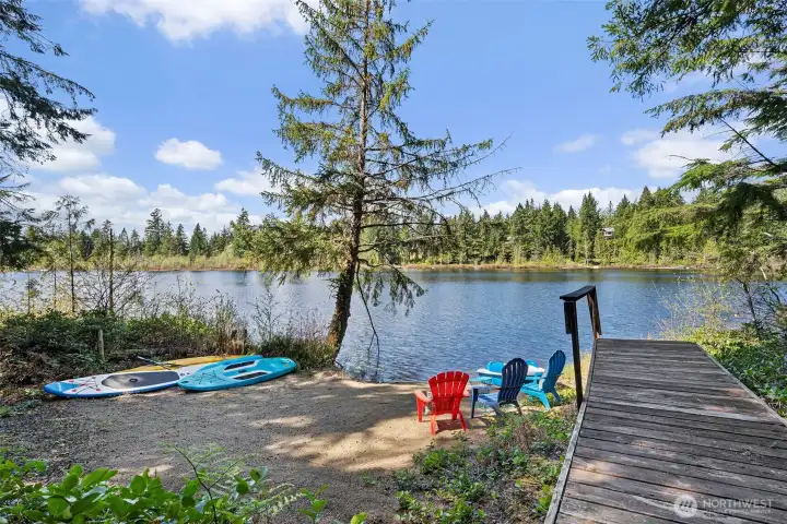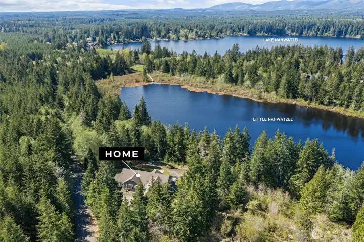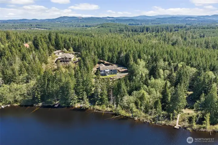 Check out this absolutely stunning custom home on Little Lake Nahwatzel in Western Mason County. Situated on a private 2.6 acre tract with 190' of pristine lake frontage you will find this open concept 3162 square foot, 3 bedroom, 3 bath daylight rambler a home you will not want to leave! Up-to-date and well maintained features include a lodge-like interior with vaulted ceilings, a floor to ceiling stone gas fireplace, open island style kitchen with quartz counter tops, large den/office off of the front entry, heat pump and sweeping views from the composite deck on the beach side of the home. The primary suite situated on the lake side with fabulous views features double walk-in closets, soaking tub and separate shower. Downstairs there is a cavernous family/recreation room, a third bedroom and a convenient third garage perfect for outdoor furniture storage, your side-by-side or golf cart. Outside there is extensive landscape and terraces, firepit and a sandy beach at the lake's shore perfect for swimming, kayaking or fishing. Little Nahwatzel is a private, spring fed, non-motorized lake with access limited to owners that is stocked with rainbow trout making it excellent for rod and fly fishing. Located within walking distance of Lake Nahwatzel - 280 acre full-watersports lake. Fish nearby rivers for steelhead, or wander in the Olympics, a more peaceful environment you will not find! Work from home with high speed connectivity or enjoy a beverage at the Lake Nahwatzel Resort.