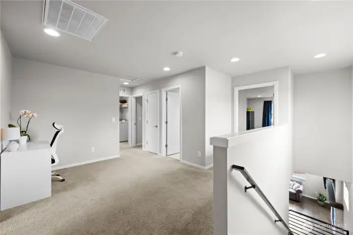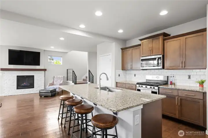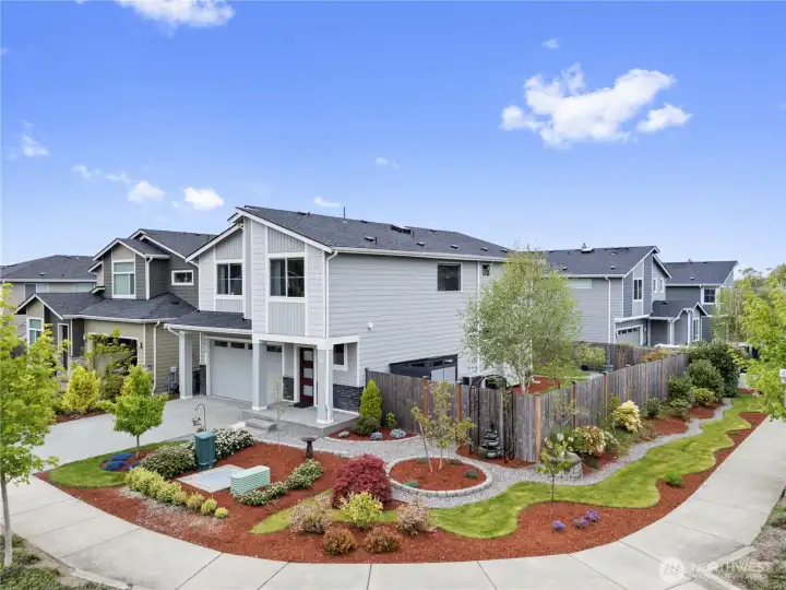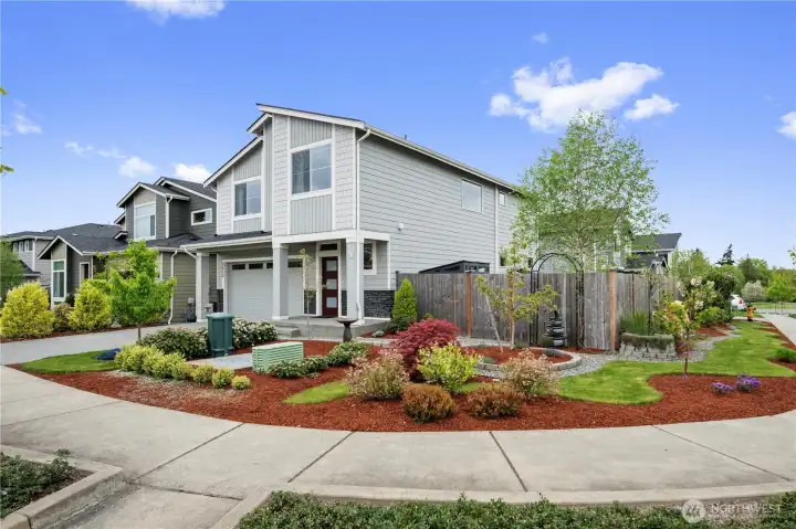 Welcome to the sought-after Larkspur neighborhood in Lake Stevens, where charm and comfort meet in this beautifully maintained two-story Craftsman home on a spacious corner lot with exceptional curb appeal and generous outdoor living space. Fresh interior paint and a warm atmosphere greet you inside. The open-concept main floor seamlessly connects the living, dining, and kitchen areas, filled with natural light and designed for everyday living and entertaining. The living room features a cozy gas fireplace, perfect for relaxing or hosting guests. The dining area offers ample space for casual meals or gatherings. The expansive chef’s kitchen boasts abundant counter space, a large island with seating, and a walk-in pantry for added storage and convenience. Upstairs, four generously sized bedrooms provide flexibility for guests, a home office, or hobbies, along with a versatile loft ideal for a media room or study space. The upstairs laundry room adds efficiency to daily routines. The private primary suite is set apart and offers dual sinks, a deep soaking tub, oversized shower, separate water closet, and a large walk-in closet. The corner lot yard provides plenty of space for entertaining, gardening, or simply enjoying the outdoors. This Larkspur gem blends classic Craftsman style, modern comforts, and a highly livable floor plan in a desirable community setting.