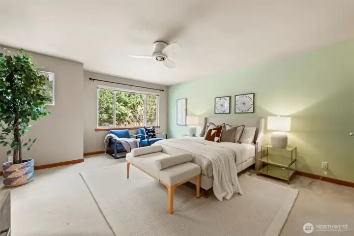Well-maintained townhome-style condo offering 3 bedrooms and 2.5 baths in a convenient Shoreline location. This spacious home features a thoughtful layout with quality finishes and comfortable living spaces throughout.The main level showcases bamboo flooring, high ceilings, and a welcoming living area with a gas fireplace and custom built-in cabinetry. The kitchen is designed for both function and style, featuring granite countertops, a center island with bar seating, and a walk-in pantry.Just off the dining area, enjoy a sunny patio surrounded by mature landscaping—ideal for outdoor dining, relaxing, or entertaining.Upstairs, the generous primary suite includes a spacious bath with dual sinks, a jet tub, and a separate shower. Two additional bedrooms, a full bath, and a conveniently located washer and dryer complete the upper level.Additional features include an efficient hydronic heating system and an oversized two-car garage with abundant storage space. Located right next to the Ridgecrest Elementary School, near parks, trails, and everyday amenities.