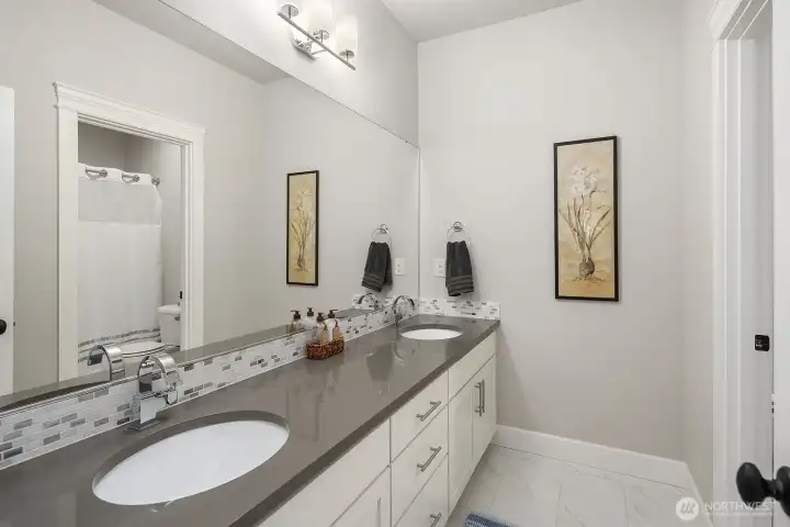 Immaculate, light, bright, 3,609 sqft 2-Story Village Life resale on level 8,276 sqft (.19 acre) lot. Improvements include: Family room built in cabinets, Laundry room cabinets and sink, Built in Buffet in daily dining area, Upgraded carpeting throughout, Primary bathroom custom walk-in closet, Garage flooring and shelving. Main floor features: Open floor plan. Hardwood floors in entry and dining room. Vaulted ceilings in family room with gas fireplace. Large Chef Kitchen with Island center, quartz counters. Nook with sliding glass door to covered patio. Bedroom. 3/4 bath. 2nd floor features: 4 beds, 2.75 baths, utility room. Owner's suite complete with vaulted ceilings, sitting area, walk in closet & luxurious en-suite bath with soaking tub, separate shower, double vanity. Fully fenced. AC. Covered Entry. 3-Car Garage. Northshore School District. Conveniently located within close proximity to 405, I-5, parks, Bothell, Canyon Park, Kirkland, Bellevue.
