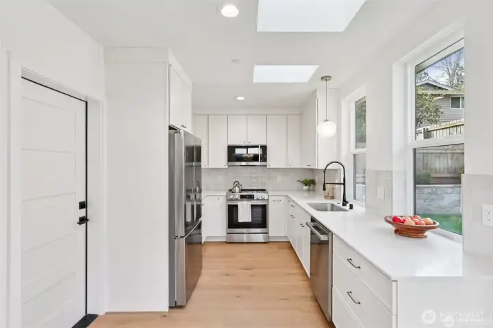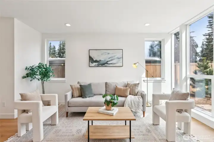 This new construction stand-alone home, in a prime Shoreline neighborhood, is thoughtfully designed blending modern style with everyday 3bed/2.5bath comfort! You will love the light-filled open main level with high ceilings, designer lighting and stunning fixtures. Beautiful tilework, quartz surfaces, and carefully curated finishes create a polished, contemporary feel. Spacious kitchen with sleek appliances and cabinets flow seamlessly to dining and living areas, ideal for entertaining. Upstairs, the generous primary suite with vaulted ceilings offers a spa-inspired bath and walk-in closet. Two additional bedrooms and a second full bath provide flexibility for guests, office, or hobbies. Heat pump and air conditioning! The attached one-car garage is heated and insulated with an incredible floor surfacing you could use this space for project, indoor play, your car park, storage or other unique opportunities. Enjoy a private fully fenced back yard. Located in a quiet, walkable community close to parks, shops, dining, and highly regarded Shoreline schools. Enjoy the best of coastal living just minutes from Richmond Beach. All this plus a builder's 2-10 warranty. Welcome home.