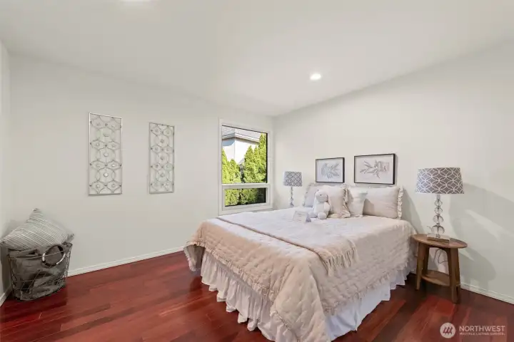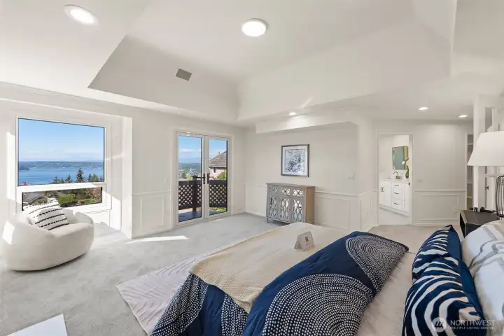 Spectacular 180-degree panoramic views of Lake Sammamish, Mt Baker and the Cascade Mountains from this lovely Vuemont home located in quiet cul-de-sac. Within walking distance to Lakemont shopping, parks, Starbucks and award winning Cougar Ridge Elementary. This home features a fully fenced private backyard, with patio, pond, Gazebo. You will enjoy the breathtaking views from the large deck and the multitude of rooms. Newly upgraded chef’s kitchen, bathrooms, fresh interior paint, stainless steel appliances, tile roof, A/C. New windows throughout. Upstairs features a spacious primary suite with walk-in closet and balcony for stunning lake and mountains view. Come to see, don't miss it.