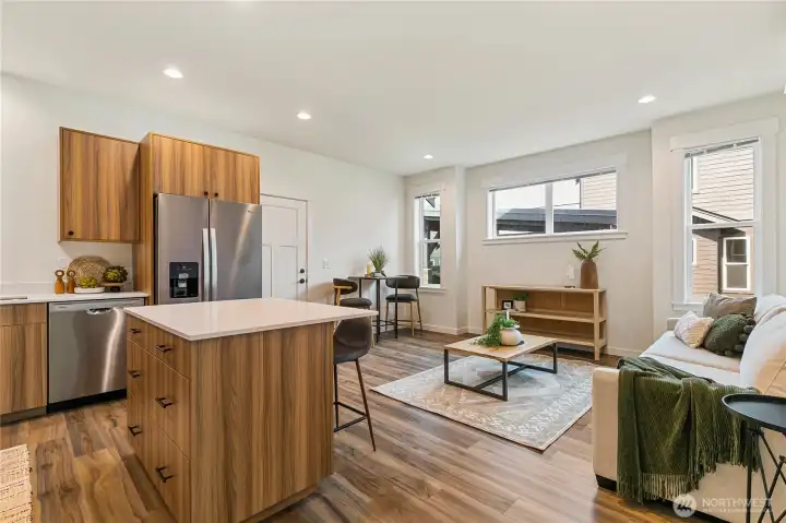 Welcome to Trailside, a new Cordata Townhome community alongside Northern Lights Park. These modern, craftsman style homes offer warm, premium finishes throughout w/ thoughtfully designed floor plans that check all the boxes. This is a corner, 3-bedroom design w/ a 2-car garage & fenced front yard along the park. Main floor offers a welcoming great room, primary bedroom w/ en-suite bath, & kitchen w/ quartz counters, custom wood cabinets, & stainless-steel appliance package. Upstairs you will find 2 additional bedrooms, full bath, a bonus space, & laundry closet. Features include ductless heat/AC, premium flooring, pantry, ample storage, 9-ft ceilings on main floor - the list goes on. Easy living at a great price!