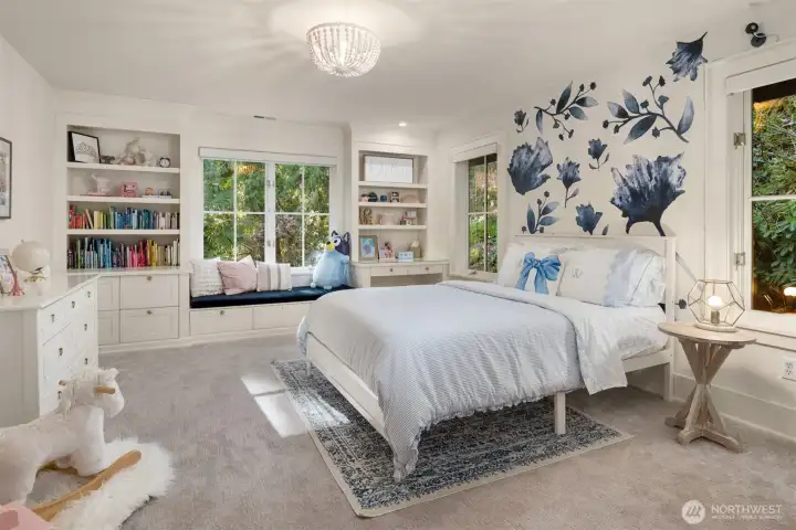 Surrounded by nature, this 4,477 sq ft home enjoys a complete 2023+ renovation & tranquil North Island location. Designer kitchen remodel in 2024 showcases an ILVE range, ZLINE appliances, custom wine wall + central wet bar/breakfast bar - all open to freshly painted living and dining spaces. Custom built-ins, all-new lighting & a wall of glass framed natural space showcase timeless details throughout. Beautiful 5-piece en-suite Primary Bedroom w/ large walk-in closet, views of Cascade Mts. & peek-a-boo’s of Lk WA/DT Bellevue. 3 additional spacious upstairs bedrooms w/ built-in window seats/desks, + views of mts. & nature. Systems updates incl. 2023+ roof, furnace, heat pump, A/C, hot water heater, smart outlets, switches, lighting & Hunter Douglas automated shades. Spa-like baths feature heated floors, slab stone counters, generous layouts & new steam shower. Fresh interior paint, new flooring, radiant heated mudroom, theater/gym/bonus room in basement + main floor 5th bedroom/office w/ new 3/4 bath. The garage has been refreshed w/ abundant storage, new rolling doors, professional speckle floor, shop space, generator & hot tub/water feature pump. Ample parking in 3-car garage + driveway & 2 lower level spaces. Just minutes from Northwood Elm, MIHS, JCC, parks & easy Seattle/Bellevue access. Pre-inspection available upon request. Financing option available for 2/1 rate buy-down @ 3.999%!