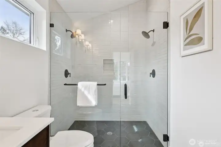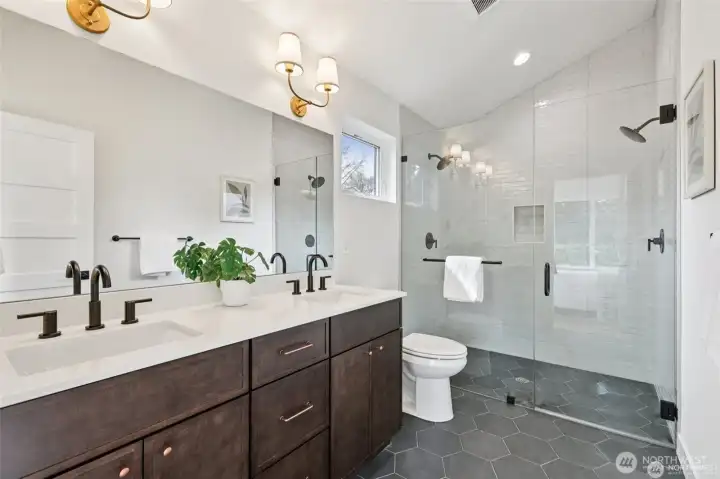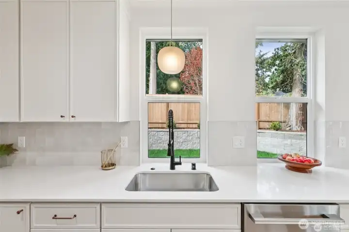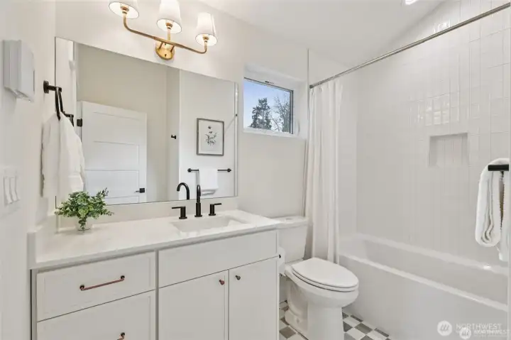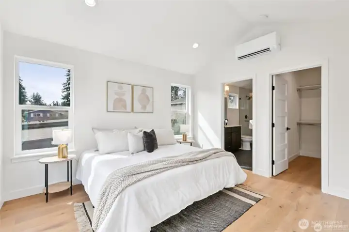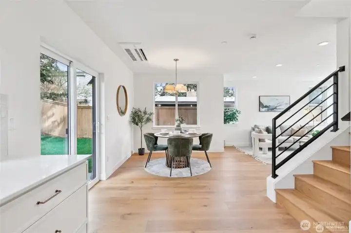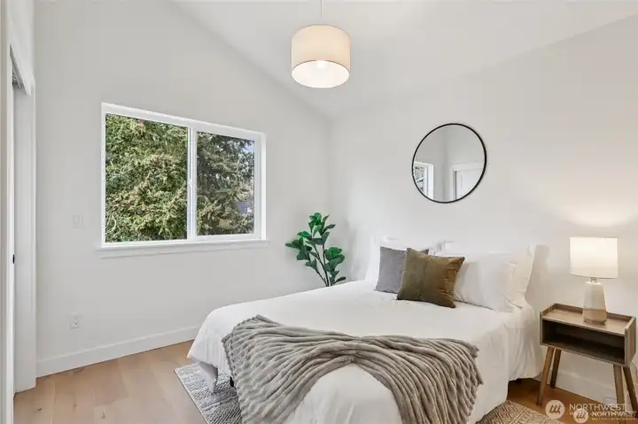 This new construction stand-alone home, in a prime Shoreline neighborhood, is thoughtfully designed blending modern style with everyday 3bed/2.5bath comfort! You will love the light-filled open main level with high ceilings, designer lighting and stunning fixtures. Beautiful tilework, quartz surfaces, and carefully curated finishes create a polished, contemporary feel. Spacious kitchen with sleek appliances and cabinets flow seamlessly to dining and living areas, ideal for entertaining. Upstairs, the generous primary suite with vaulted ceilings offers a spa-inspired bath and walk-in closet. Two additional bedrooms and a second full bath provide flexibility for guests, office, or hobbies. Heat pump and air conditioning! The attached one-car garage is heated and insulated with an incredible floor surfacing you could use this space for project, indoor play, your car park, storage or other unique opportunities. Enjoy a private fully fenced back yard. Located in a quiet, walkable community close to parks, shops, dining, and highly regarded Shoreline schools. Enjoy the best of coastal living just minutes from Richmond Beach. All this plus a builder's 2-10 warranty. Welcome home.